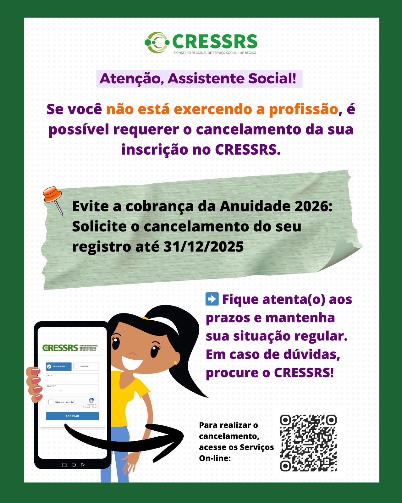 O Conselho Regional de Serviço Social do Rio Grande do Sul (CRESSRS), entidade de personalidade jurídica de direito público, com jurisdição no Estado do Rio Grande do Sul, que tem como objetivo e atribuição precípua, disciplinar, orientar, fiscalizar e defender o exercício da profissão de Assistente Social, vem a público manifestar-se diante da recente exposição […]